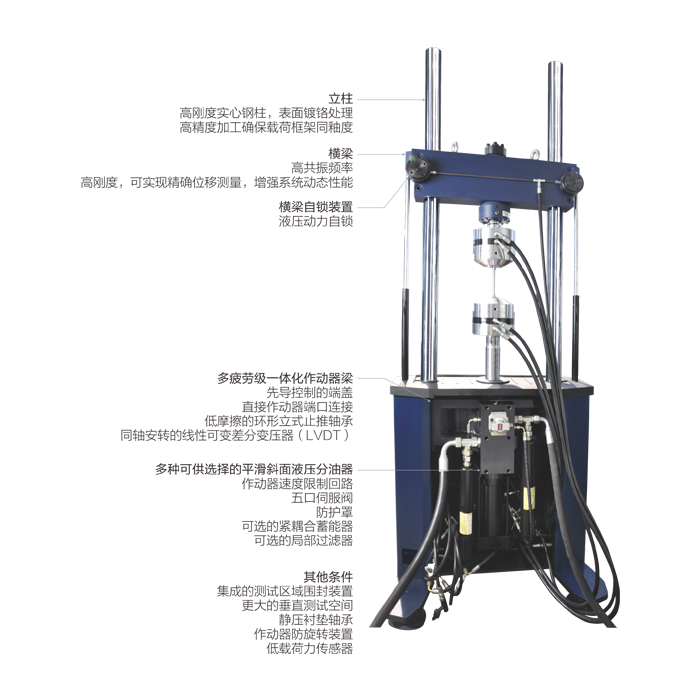 电液伺服动态疲劳试验机可满足各种材料和零部件的静态力学测试需要。可以根据不同行业用户需求提供定制解决方案。试验方案具备多功能性和设计灵活性,可满足多国的测试标准,亦可定制各种新材料的试验方法。