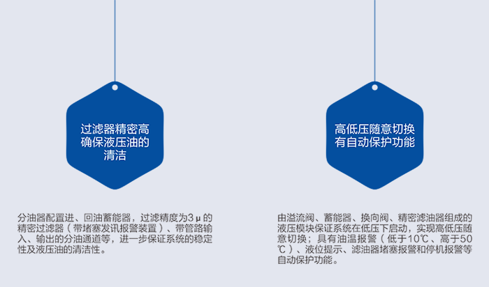 ⑤ 液压油源系统具有低液位、超温、超压、电机过流自动保护及滤油器堵塞保护等功能;